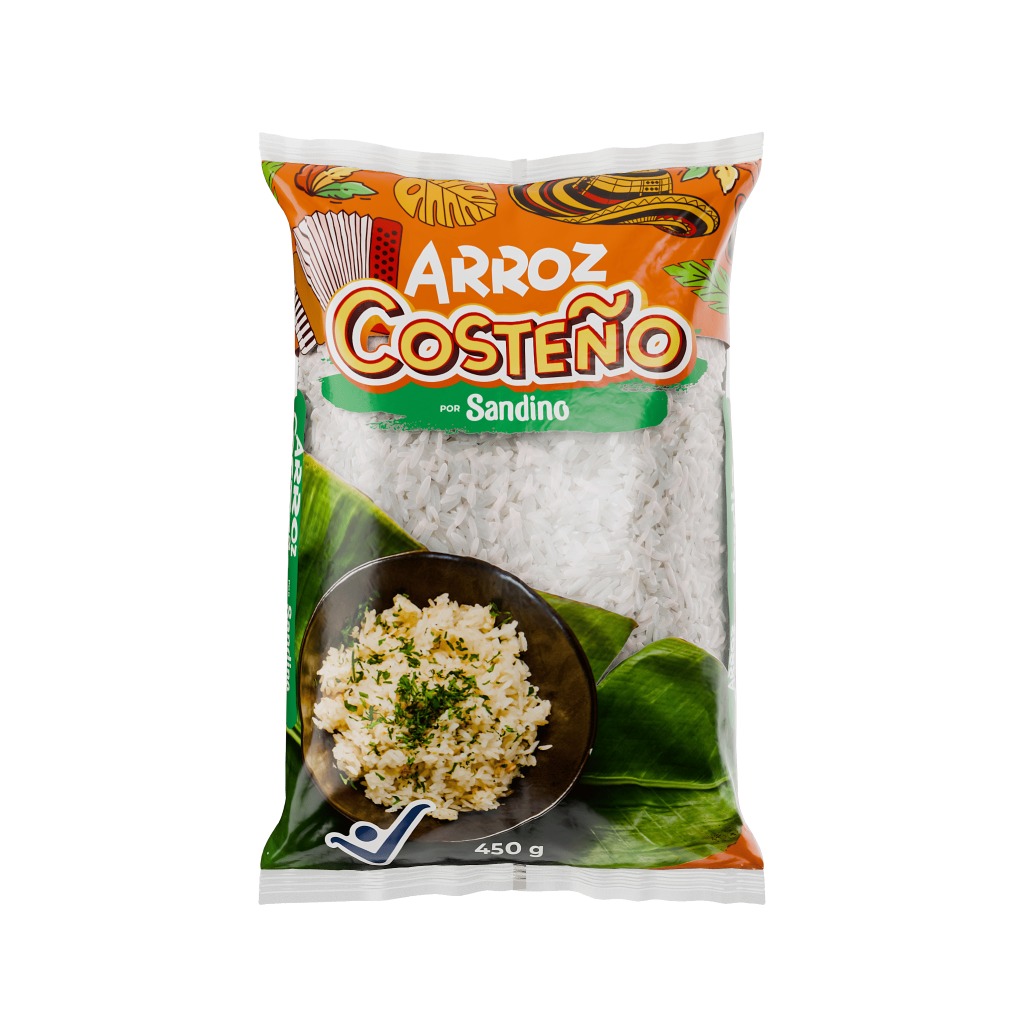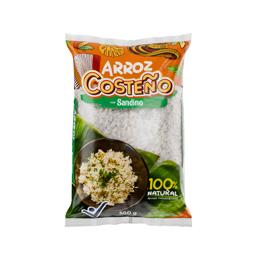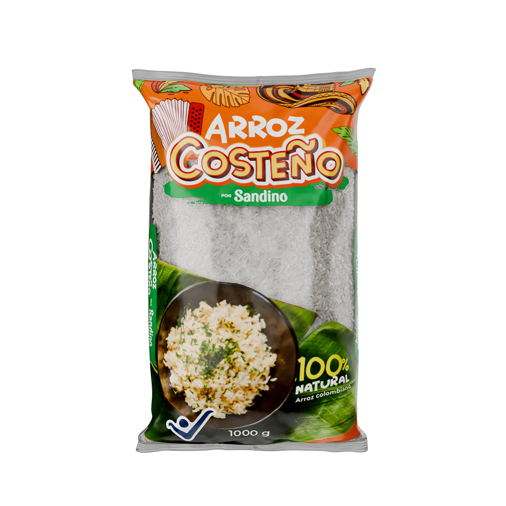 ¿Por qué Arroz Costeño por Sandino ? Nació para acompañar la cocina caribeña colombiana. Grano largo, suelto y de cocción rápida — exactamente lo que piden el arroz con coco, el sancocho de guandú y la mesa costeña. El sabor del Caribe en cada porción.