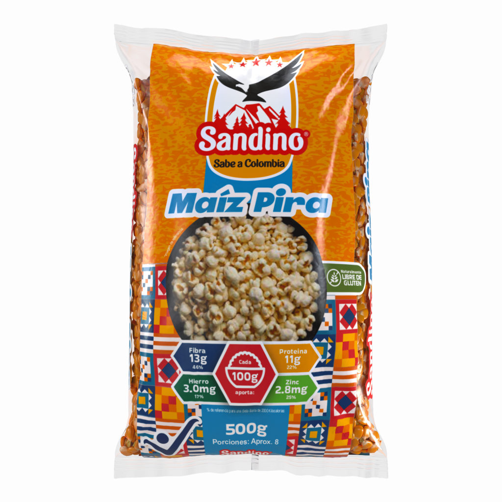 El maíz pira es la base de la cocina colombiana tradicional. Energético, rico en fibra y fuente natural de magnesio y hierro, alimenta con la contundencia que exige una mesa campesina. Maíz Pira Sandino trae el grano colombiano de siempre — seco, seleccionado y listo para las preparaciones de toda la vida.